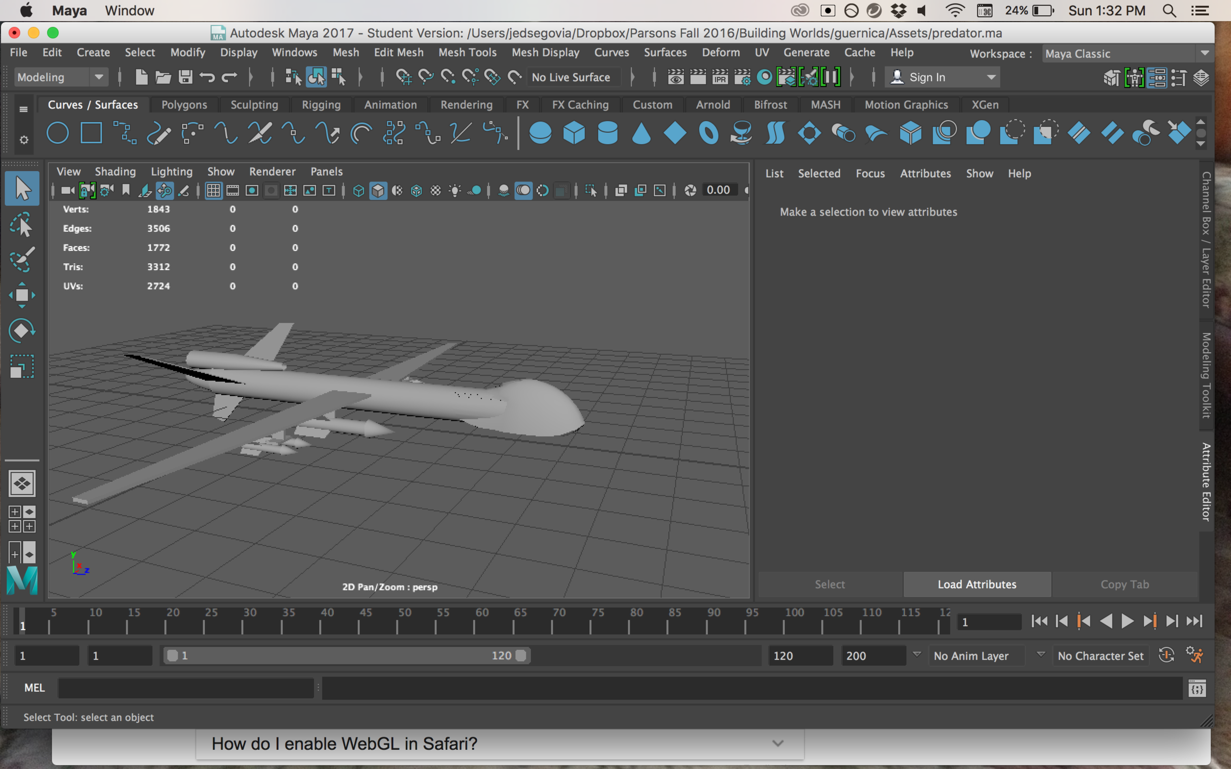 As a statement on the airstrikes of Aleppo, Syria, and drone warfare, I was moved to develop a provocative and uneasy interactive remake of Pablo Picasso's "Guernica," a painting depicting the first ever large-scale airstrike in modern warfare. I made it contemporary by modeling a predator drone that the user controls. The objective is to simply explore a moody and atmospheric bombed-out city, with figures from the original painting towering eerily around.